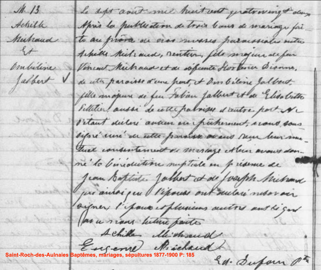 La Branche de Achille Michaud N*1843 D*1930 Marié à Obelline Jalbert N*1846 M*1882 D*1928 Ascendants |
