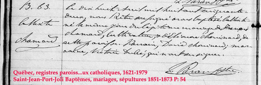 La Branche de Calixte Chamard N*1852 D*1937 Marié à Célina Duval N*1861 M*1880 D*1932 Ascendants |