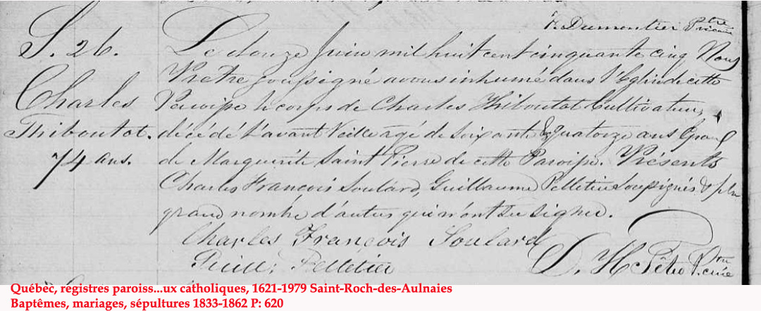 La Branche de Charles Thiboutot N*1785 D*1855 Marié à Marguerite St-Pierre N*1787 M*1807 D*1868 Fils de Jean-François Thiboutot et Madeleine Mignier de St-Roch-des-Aulnaies. |