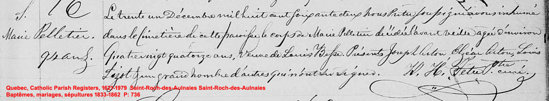N*1812 D*? Mariée à Pierre Filteau N*1820 M*1843 D*? |