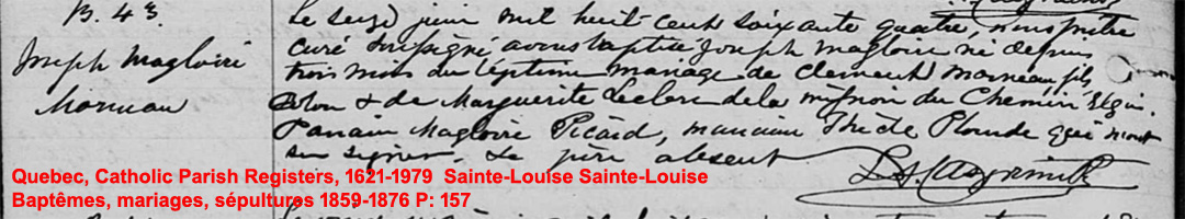 N*1872 D*1927 Marié à (1) Marie-Malvina Fortin N*1870 M*1892 D*1924 Marié à (2) Marie-Adrienne Paradis N*1900 M*1925 D*? |