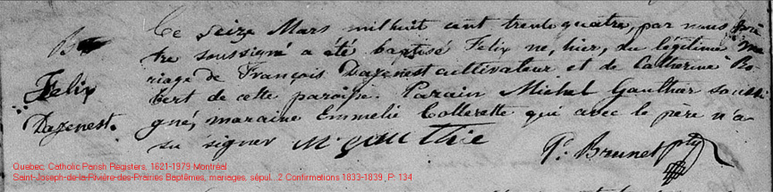 La Branche de Félix Dagenais N*1834 D*? Marié à Domithilde Labelle N*? M*1857 D*? Ascendants |