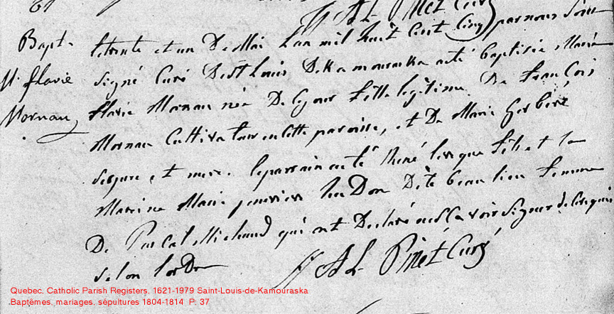 La Branche de Flavie Morneau N*1805 D*1887 Mariée à Antoine Lévesque N*1798 M*1827 D*1838 Mariée à Benjamin Dufour N*1815 M*1843 D*1857 Ascendants |