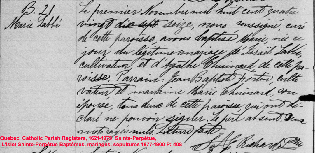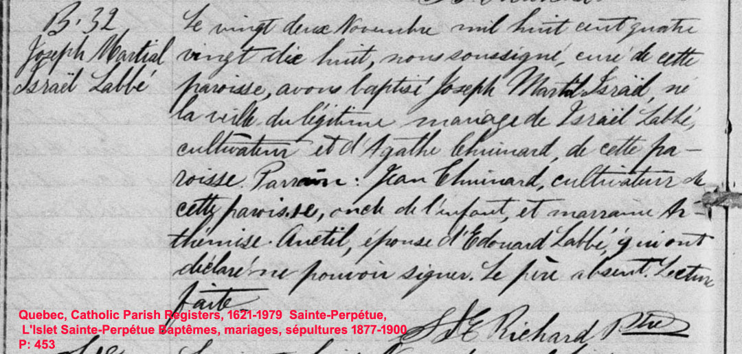 La Branche de Israël Labbé N*1860 D*? Marié à Agathe Chouinard N*1862 M*1885 D*? Ascendants |