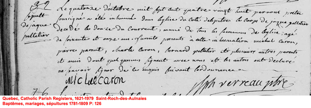 La Branche de Jacques Pelletier N*1720 D*1788 Marié à Marie-Anne-Madeleine Roy N*1727 M*1747 D*1801 Ascendants |