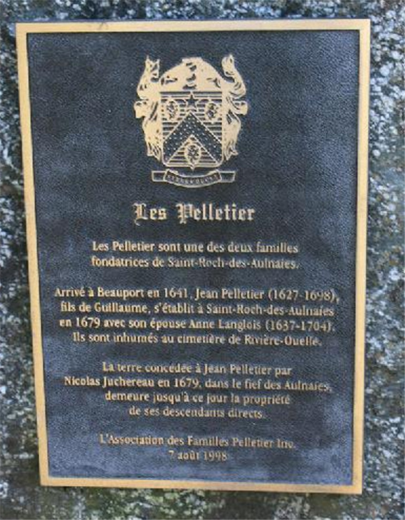 Jean Pelletier N*1663 D*1739 Marié à Marie-Anne Huot N*1666 M*1689 D*1734 |
