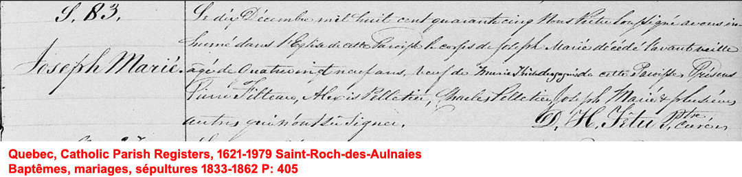 Louis-Joseph N*1794 D*1863 Marié à (1) Céleste Leclerc N*1797 M*1813 D*1834 Marié à (2) Marie-Olive Bernier N*1816 M*1837 D*? |