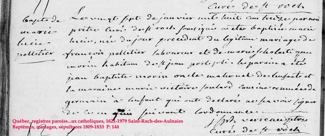 La Branche de Lucie Pelletier N*1813 D*1854 Mariée à (1)Joseph Duval N*1813 M*1840 D*1897 Ascendants |