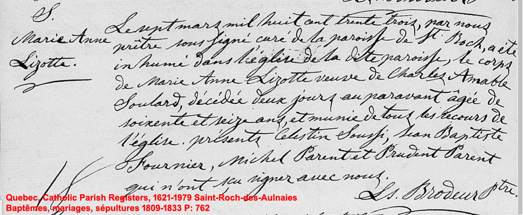 La Branche de Marie-Anne Lizotte N*1757 D*1833 Mariée à Charles-Amable Soulard N*1756 M*1778 D*1827 Ascendants |
