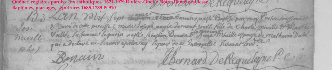 La Branche de Marie-Josephte Miville N*1711 D*1748 Marié à Joseph Lizotte N*1707 M*1730 D*1787 Ascendants |