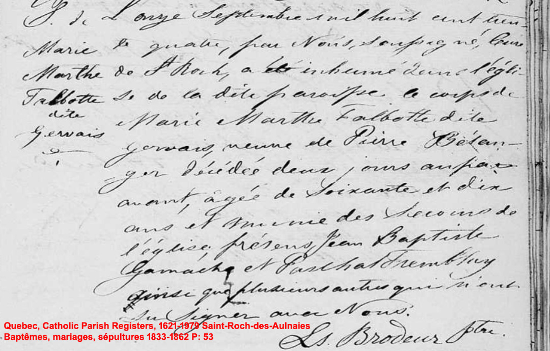 N*1805 D*1870 Mariée à Jean-Baptiste Langlais N*1800 M*1822 D*1883 |