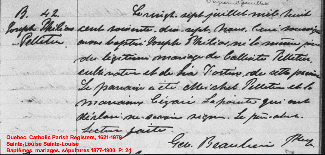 La Branche de Philias Pelletier N*1877 D*1940 Marié à Elmina Morin N*1882 M*1901 D*1961 Ascendants |
