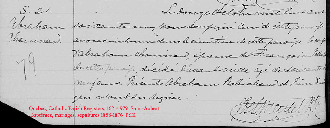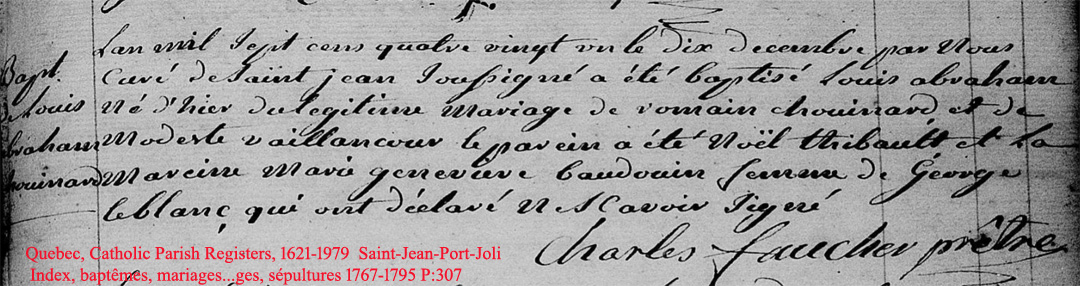 La Branche de Abraham Chouinard N*1781 D*1861 Marié à Françoise Pelletier N*1782 M*1806 D*? Ascendants |