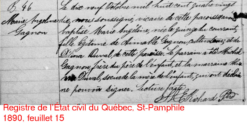 La Branche de Angéline Gagnon N*1890 D*1986 Mariée à Amable Pelletier N*1882 M*1916 D*1948 Ascendants |