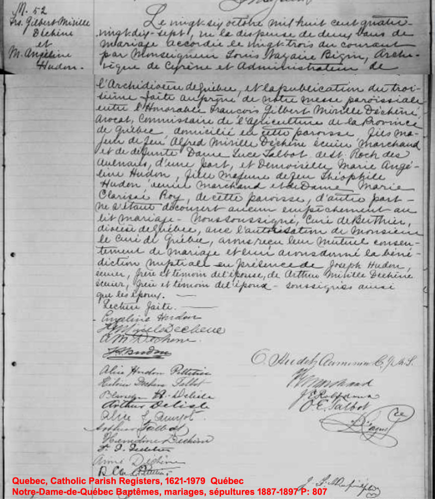 La Branche de Angélique Hudon N*1872 D*1940 Mariée à François-Gilbert Miville Deschenes N*1859 M*1897 D*1902 Fille de Théophile Hudon et Marie-Clarisse Roy. |