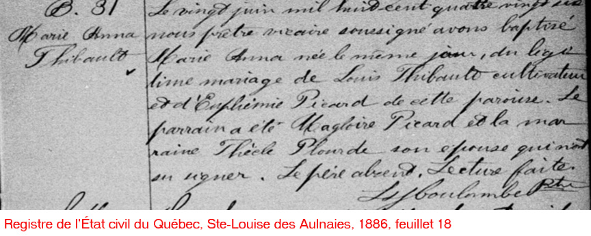 La Branche de Anna Thibault N*1886 D*1979 Mariée à Louis-Nicostrate Pelletier N*1886 M*1908 D*1971 Ascendants |