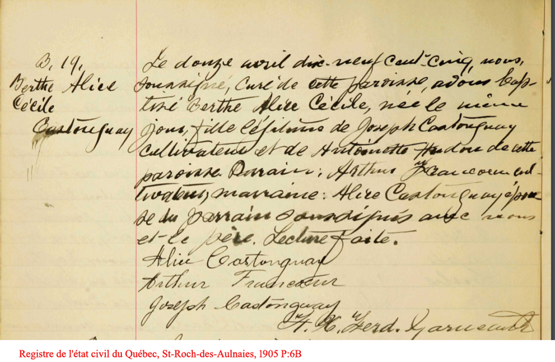 La Branche de Antoinette-Azilda Hudon N*1868 D*1924 Mariée à Joseph-Arthur Castonguay N*1865 M*1891 D*1954 Ascendants |