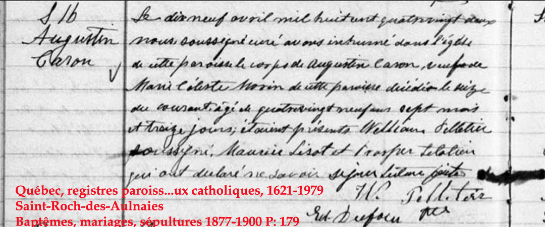 La Branche de Augustin Caron N*1792 D*1882 Marié à Céleste Morin N*1794 M*1814 D*1860 Ascendants |