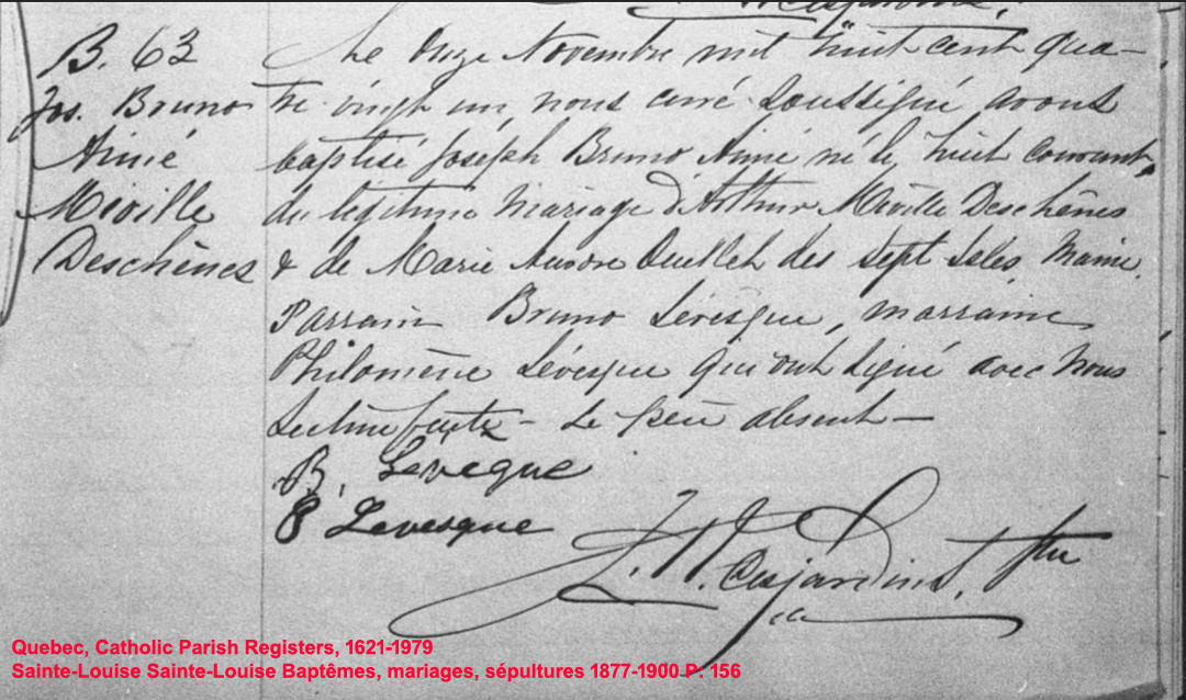 La Branche de Bruno-Aimé Miville Déchêne N*1881 D*1945 Marié à Bernadette Bernier N*1903 M*1938 D*1980 Ascendants Né à Ste-Louise-des-Aulnaies, Bruno-Aimé fut député libéral de Montmagny de 1917 à 1921. |