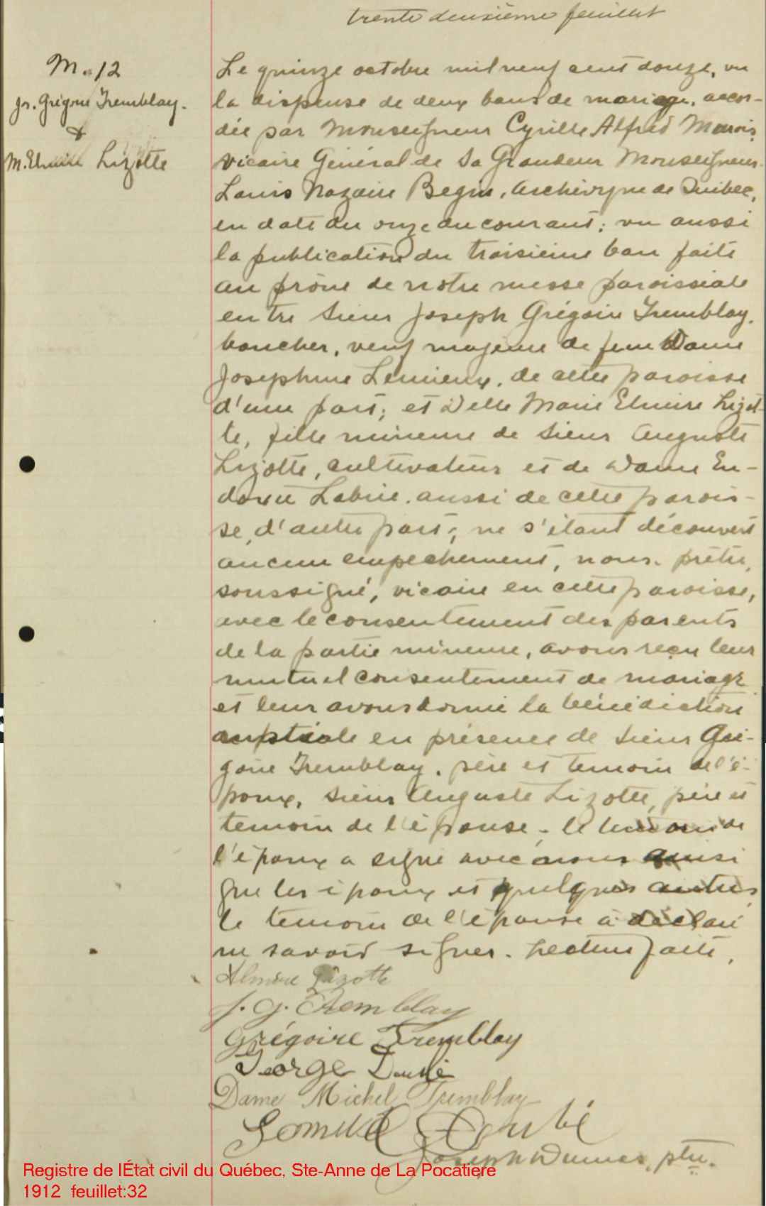 N*1890 D*? Mariée à Grégoire Tremblay N*1889 M*1912 D*? Ascendants |