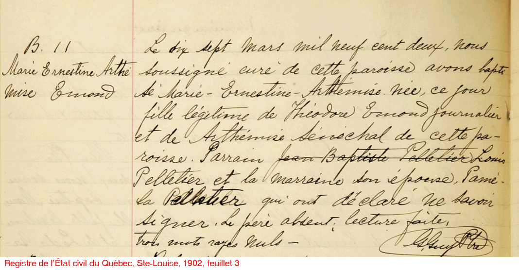 La Branche de Ernestine Émond N*1902 D*1986 Mariée à Abraham Lizotte N*1902 M*1927 D*1963 Fille de Théodore Émond et Arthémise Sénéchal. |