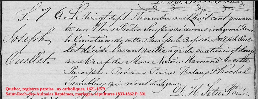 La Branche de Joseph Ouellet N*1749 D*1841 Marié à Félicité Amond N*1752 M*1772 D*1808 Ascendants |