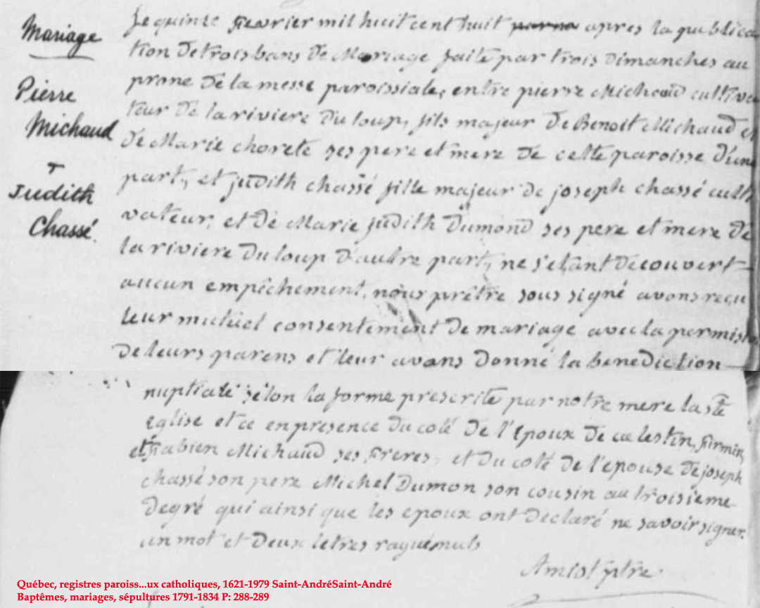 | Pierre Michaud N*1808 D*? Marié à Marie-Josephte Michaud N*1805 M*1832 D*1890 |
