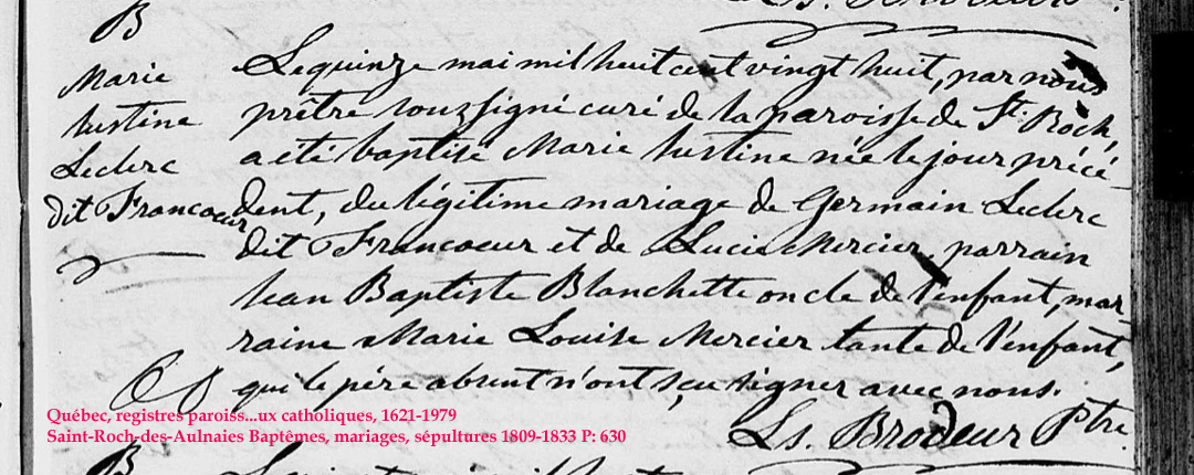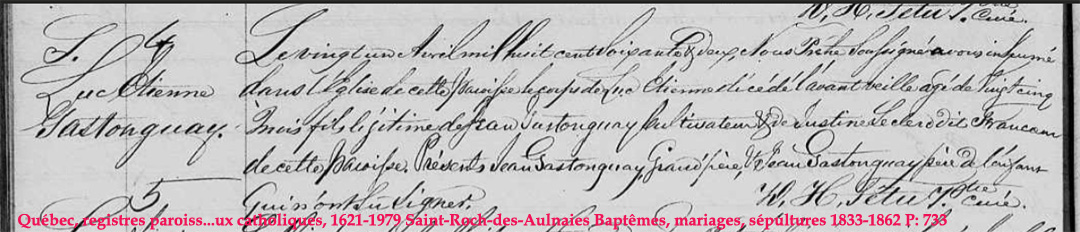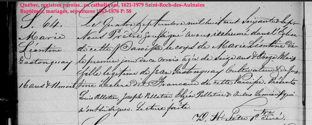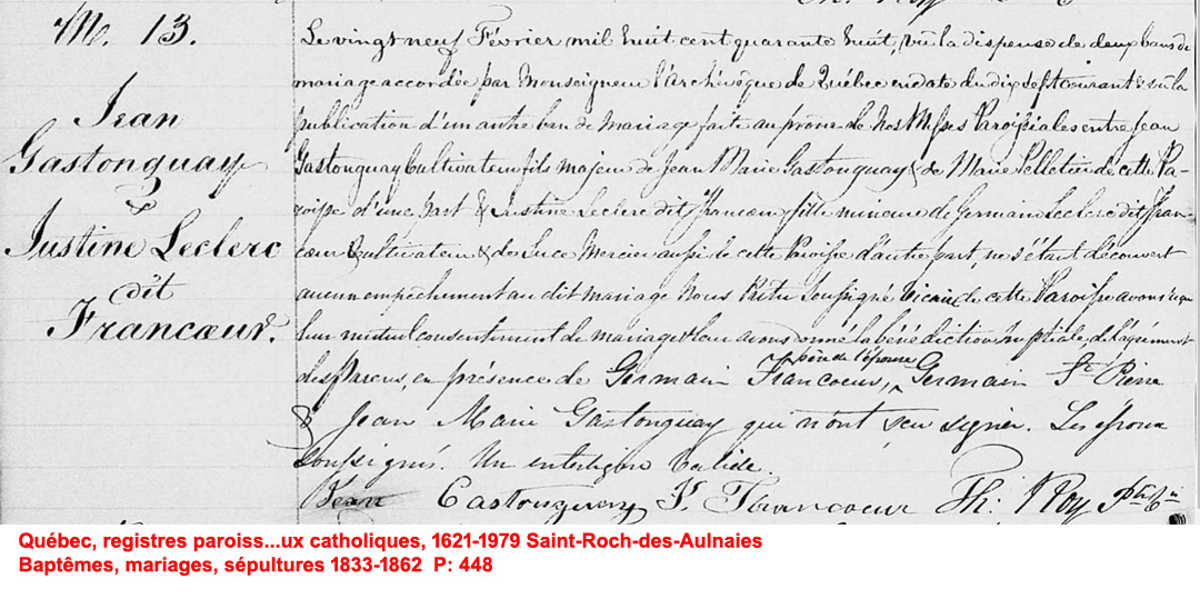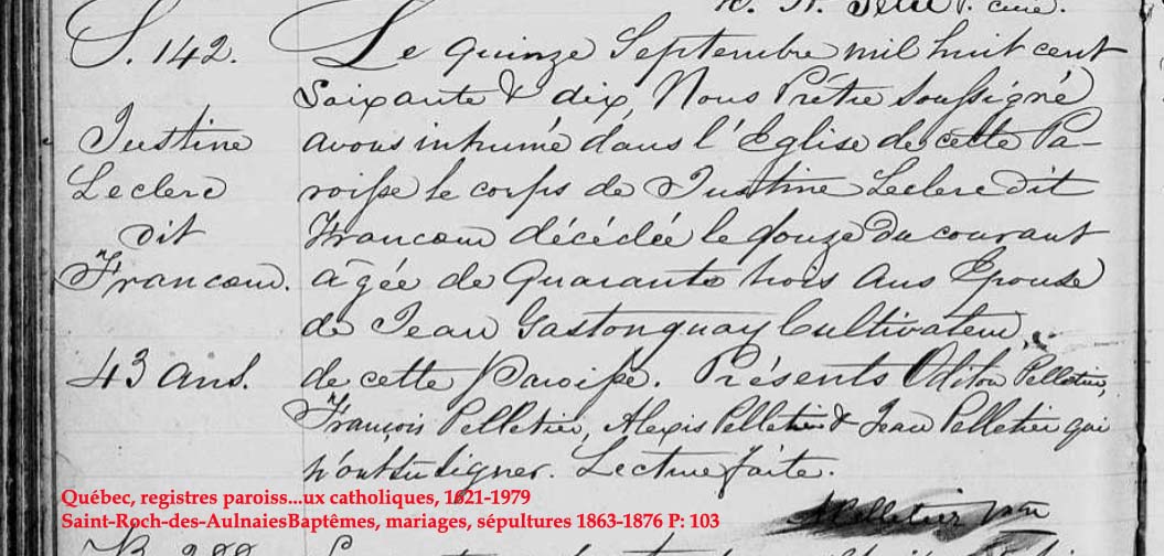 La Branche de Justine Leclerc N*1828 D*1870 Mariée à Jean Castonguay N*1815 M*1848 D*1905 Ascendants |