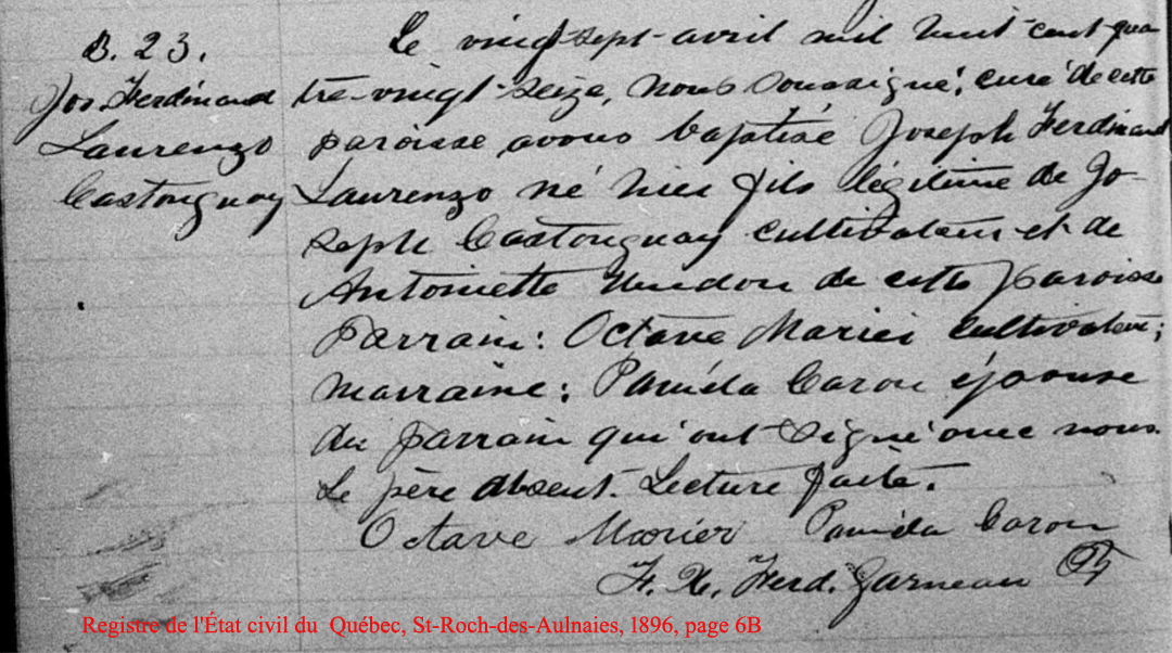 La Branche de Laurent Castonguay N*1896 D*1929 Marié à Léonie Pelletier N*1897 M*1922 D*1991 Ascendants | ![]() |