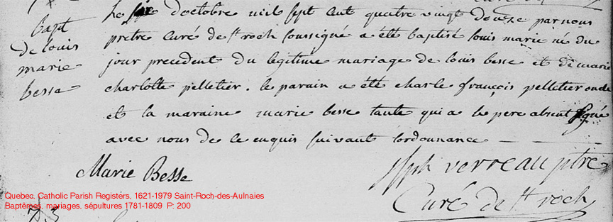 La Branche de Louis Besse N*1766 D*1859 Marié à Charlotte Pelletier N*1771 M*1788 D*1862 Ascendants |