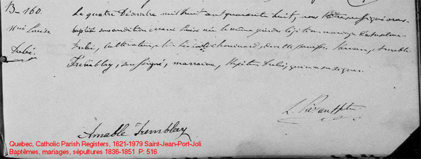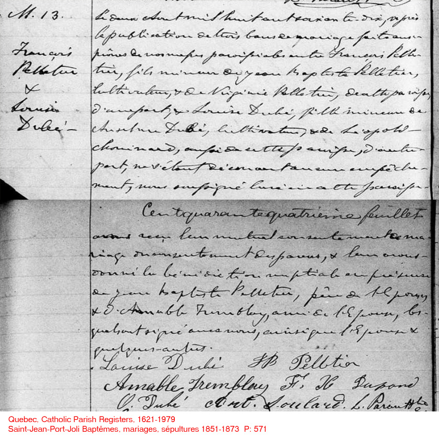 La Branche de Louise Dubé N*1848 D*1910 Mariée à François Pelletier N*1850 M*1870 D*1914 Fille de Anselme Dubé et Léopolde Chouinard de St-Jean-Port-Joli, (Québec). |