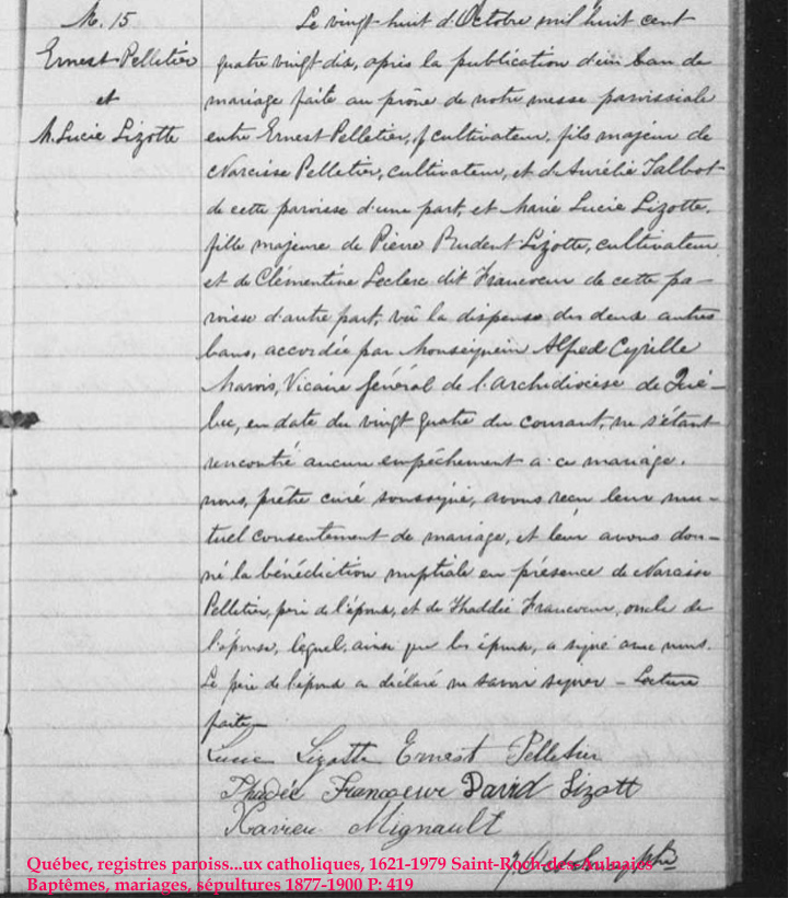 La Branche de Lucie Lizotte N*1858 D*1929 Marié à Ernest Pelletier N*1860 M*1890 D*1934 Ascendants |