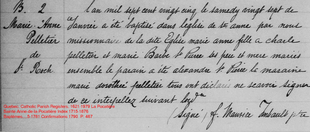 N*1765 D*1850 Mariée à Pierre Thiboutot N*1758 M*1786 D*1845 |