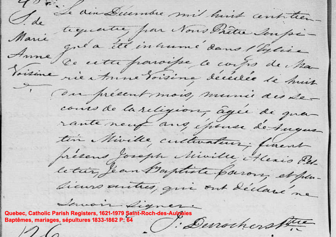 La Branche de Marie-Anne Voisine N*1786 D*1834 Mariée à Augustin Miville Deschênes N*1781 M*1806 D*1835 |