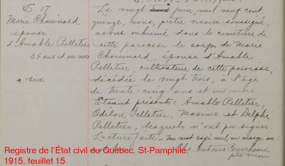 La Branche de Marie Chouinard N*1880 D*1915 Marié à Amable Pelletier N*1883 M*1904 D*1948 Fille de Elzéar Chouinard et Elmire Dubé de St-Jean-Port-Joli, (Québec). |