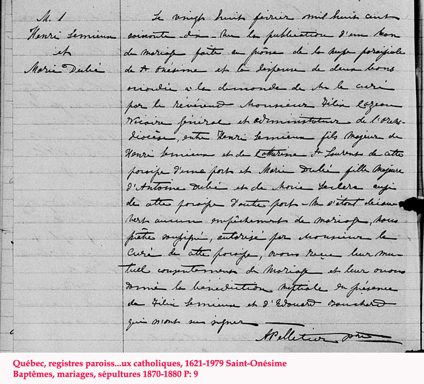 N*? D*? Mariée à Joseph Lemieux N*? M*1909 D*? |