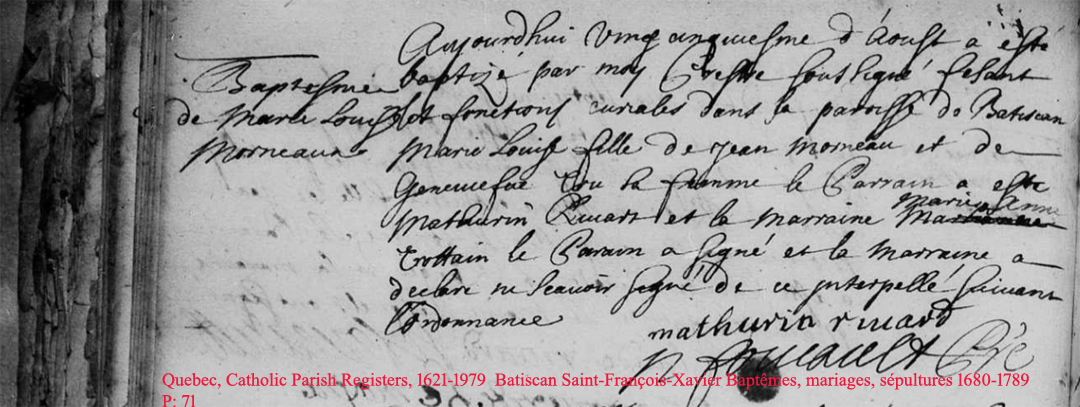 N*1731 D*? Mariée à Pierre-René Mornay dit Léveillé N*1725 M*1763 D*? |