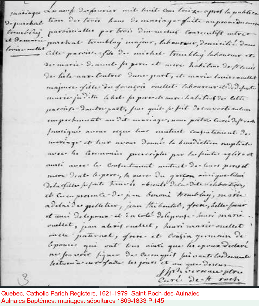 N*1791 D*1862 Mariée à Pascal Tremblay N*1791 M*1813 D*? Fille de Jean-François Ouellet et Judith Lebel de St-Roch-des-Aulnaies. |