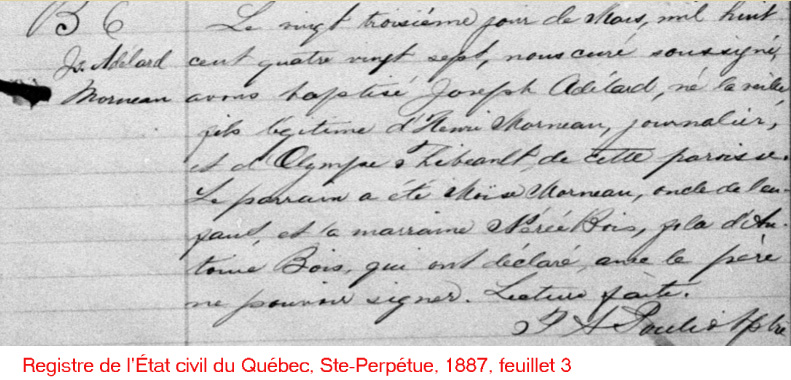 La Branche de Olympe Thibault N*1860 D*1928 Mariée à Henri Morneau N*1861 M*1881 D*? Fille de Germain Thibault et Marie-Élise Morneau de Ste-Perpétue, l'Islet. |