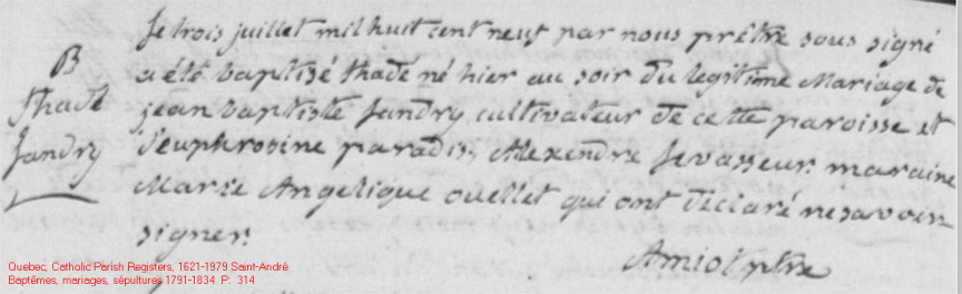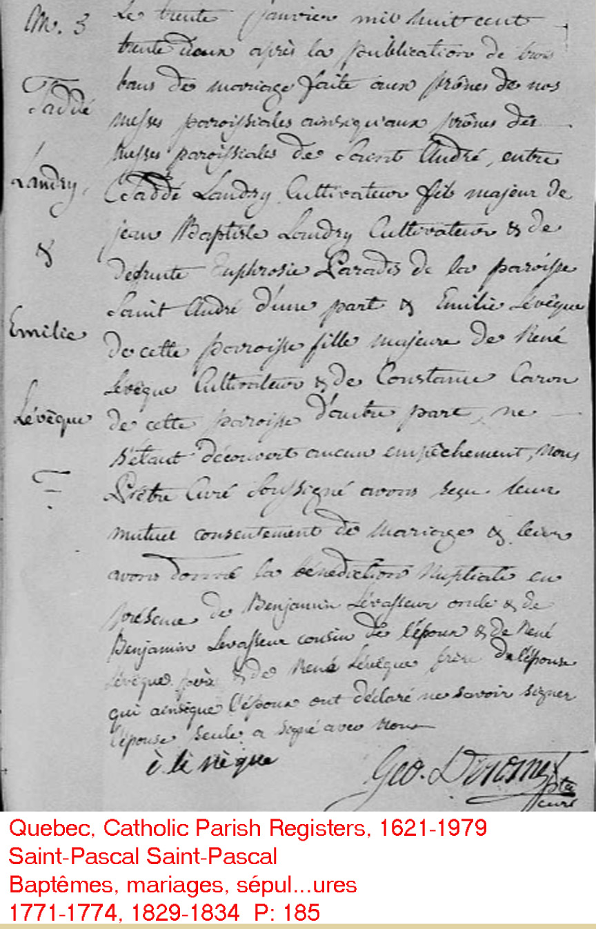 La Branche de Thaddée Landry N*1809 D*1891 Marié à Émilie Lévesque N*1808 M*1832 D*1889 Ascendants |