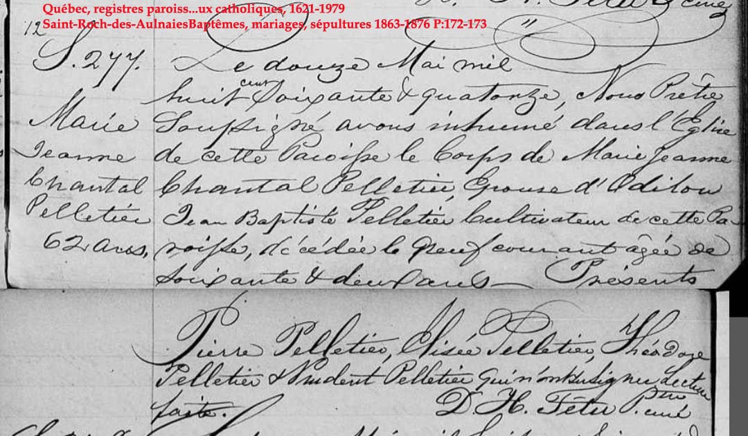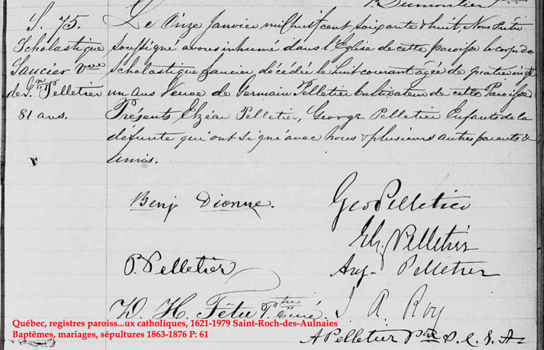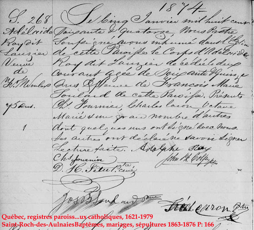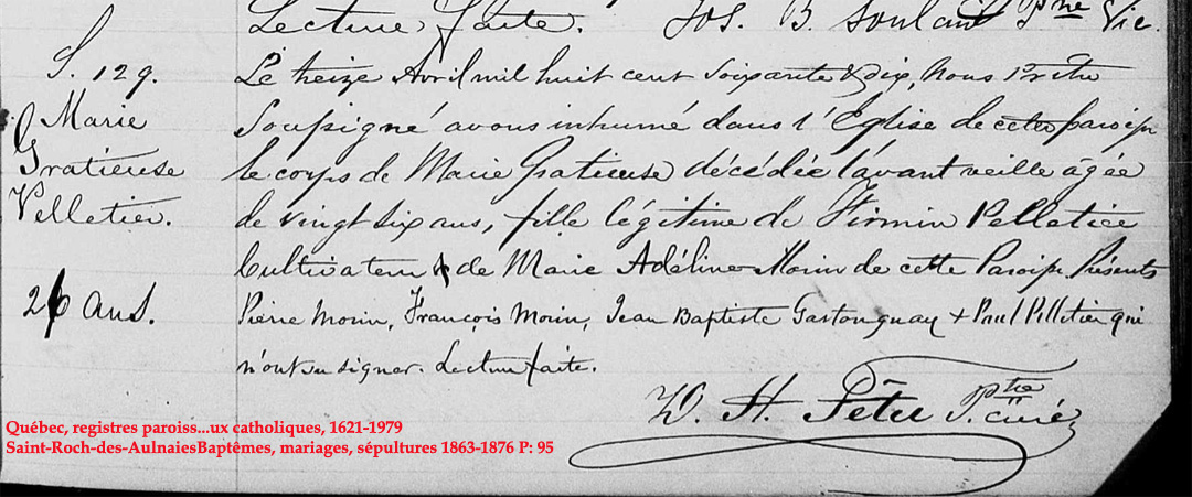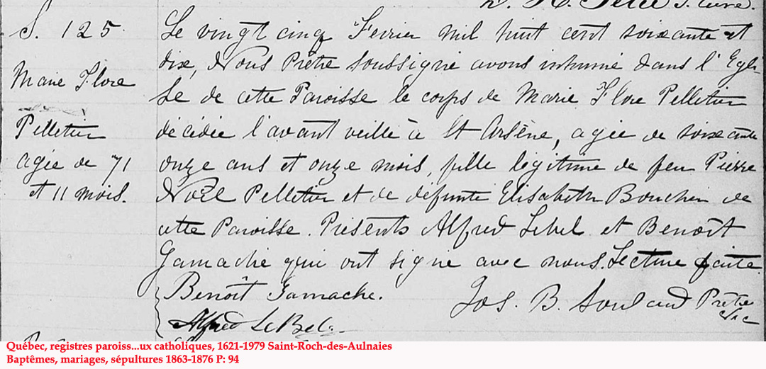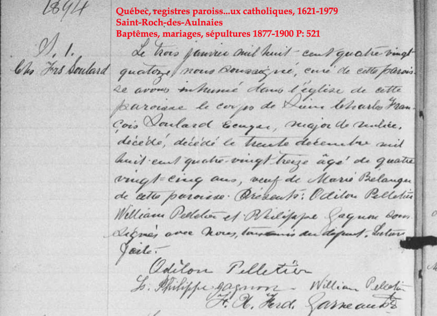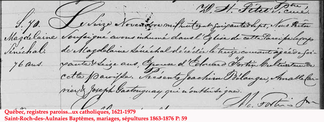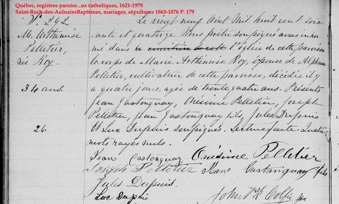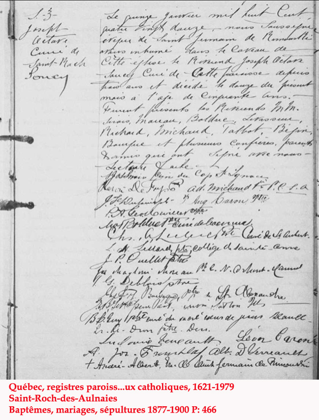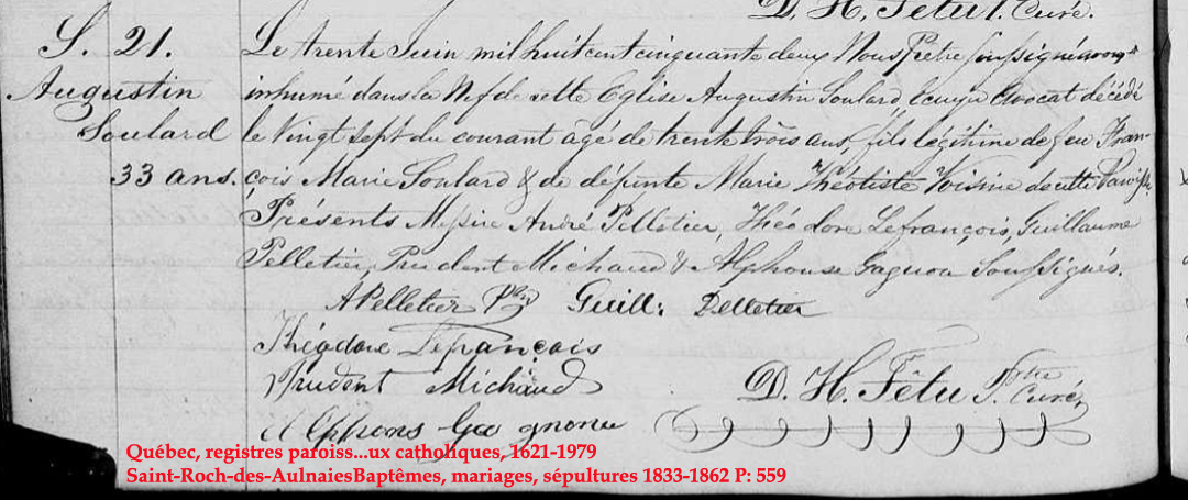 Liste des personnes inhumées dans la "Crypte" de l'Église (1849) de St-Roch-des-Aulnaies