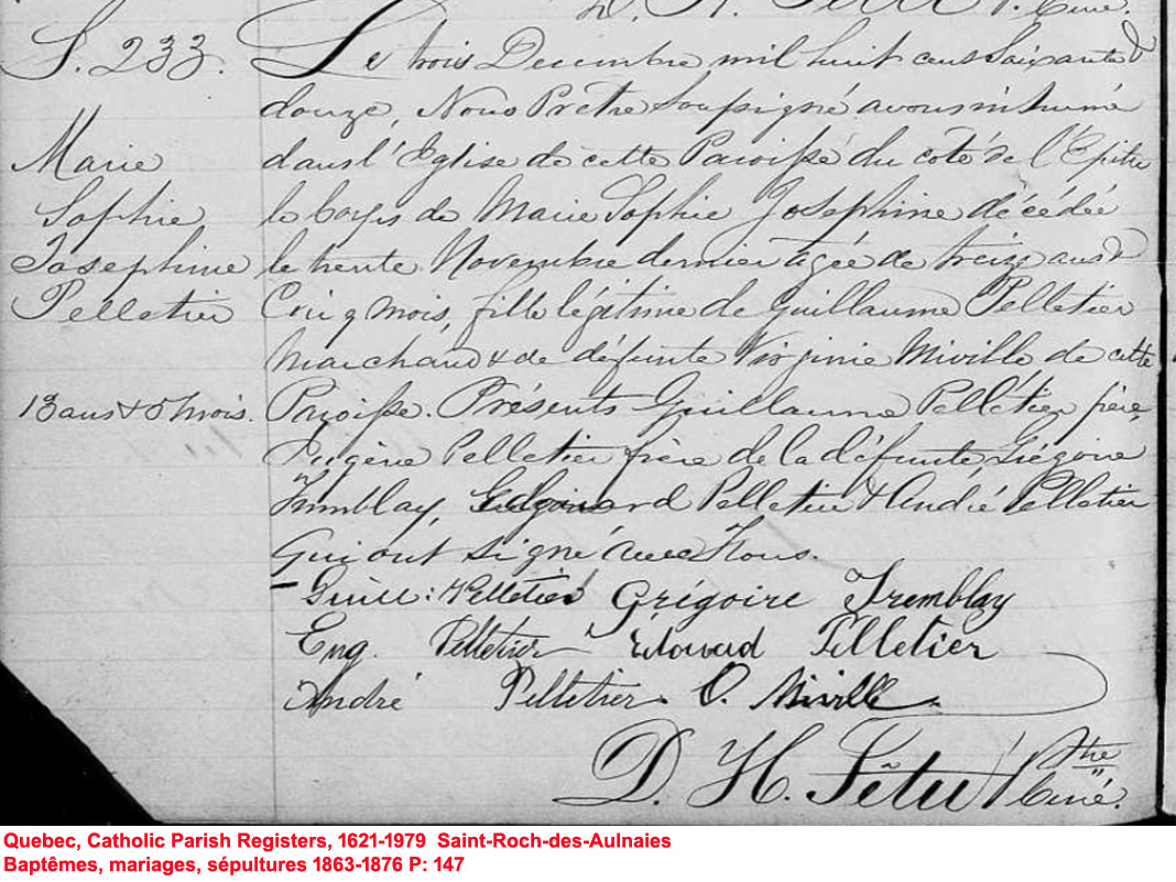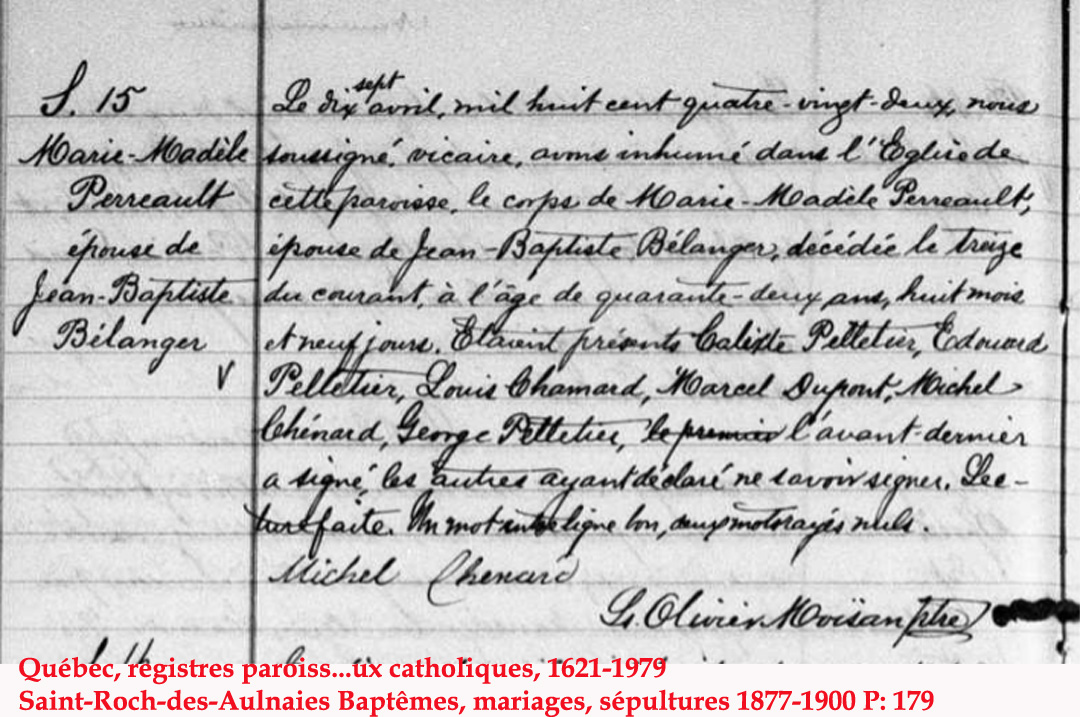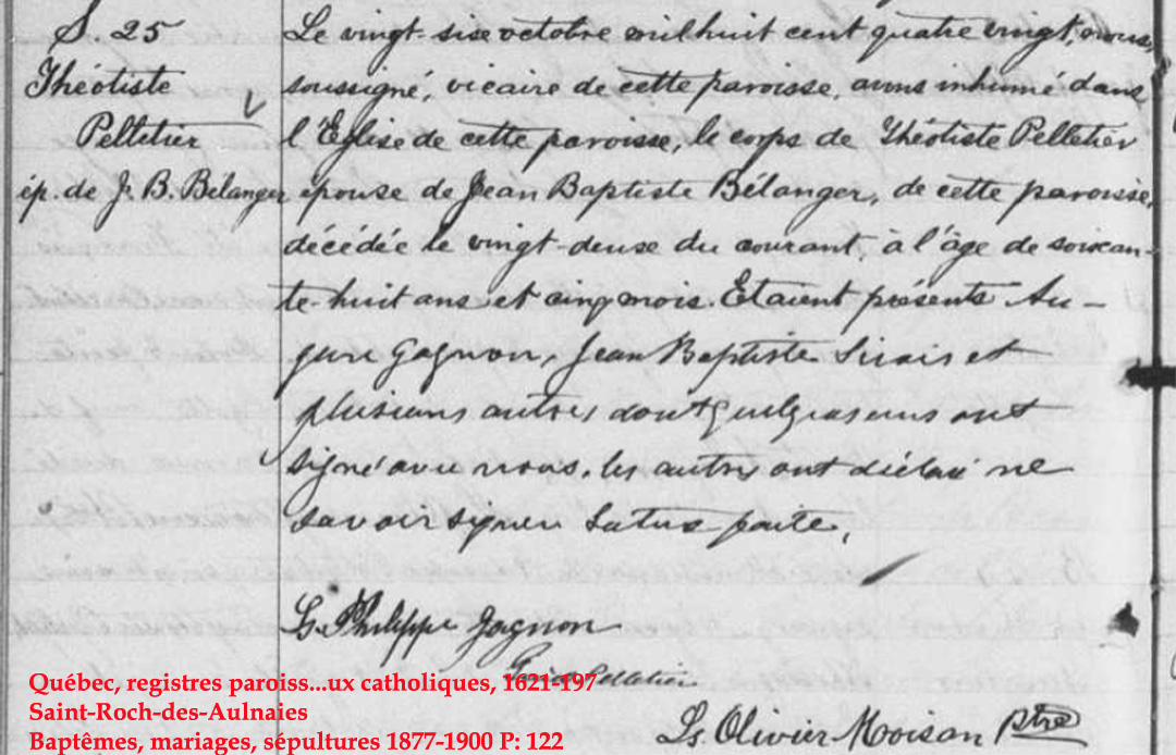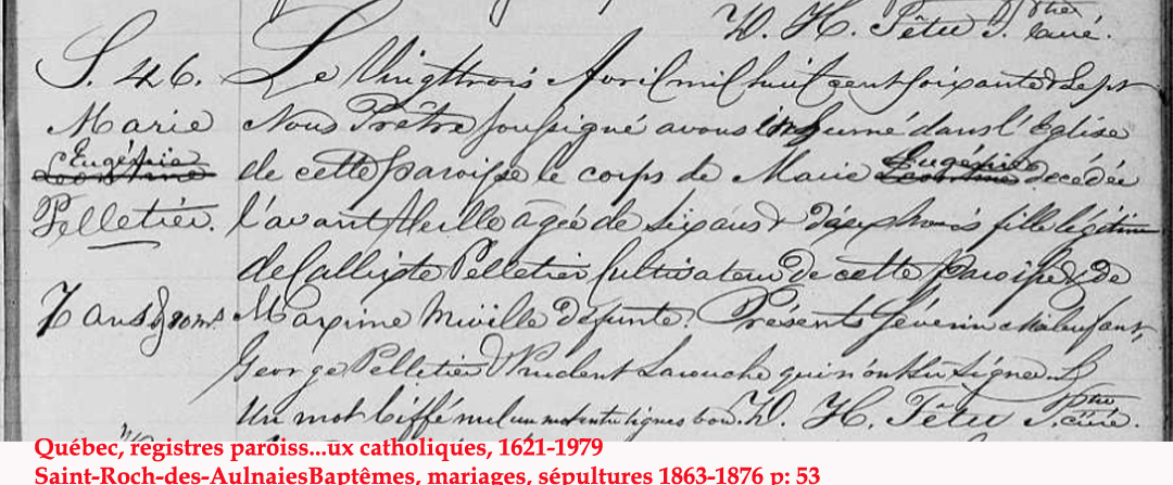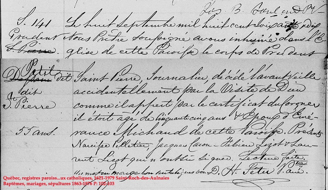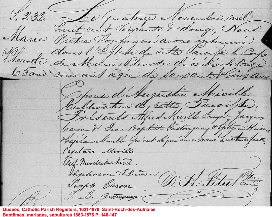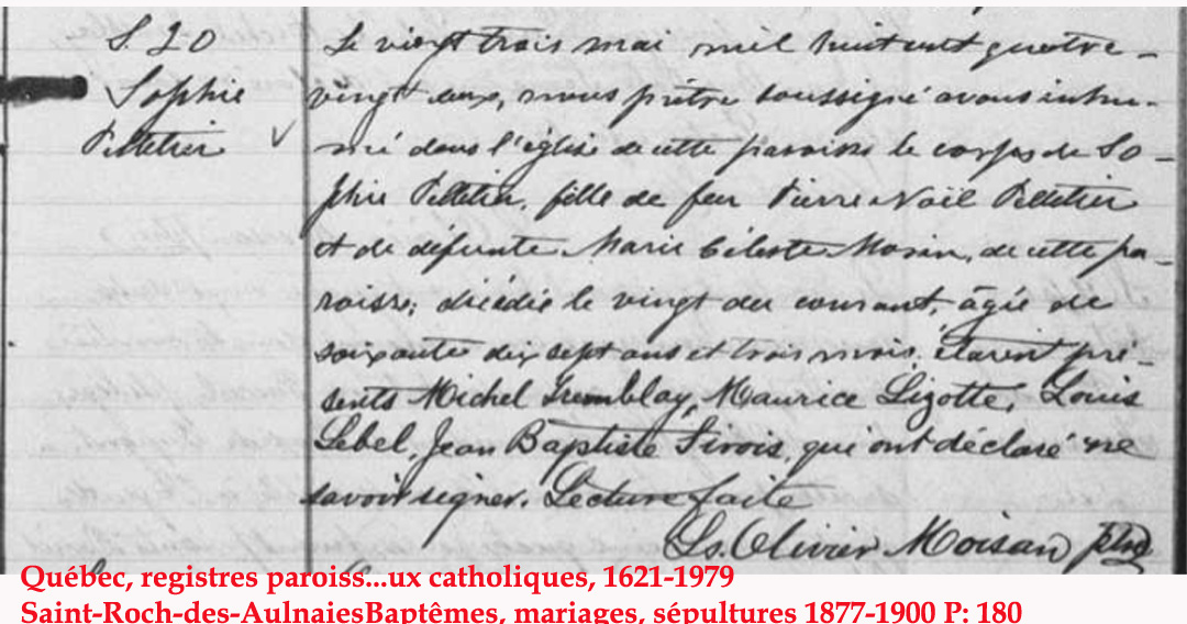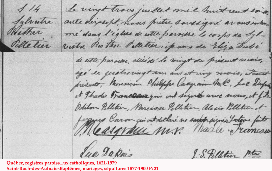 Liste des personnes inhumées dans la "Crypte" de l'Église (1849) de St-Roch-des-Aulnaies