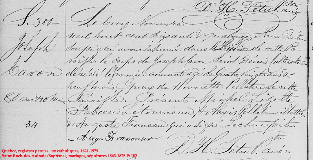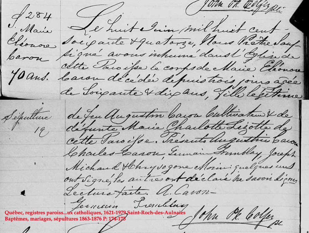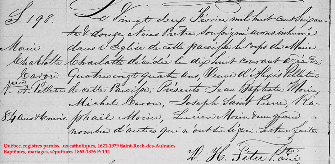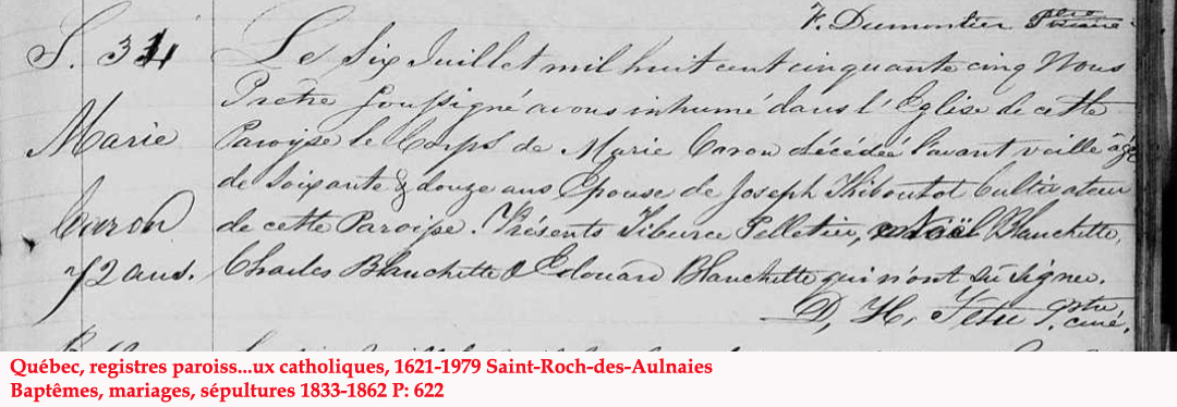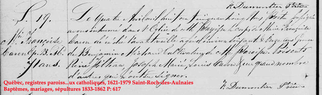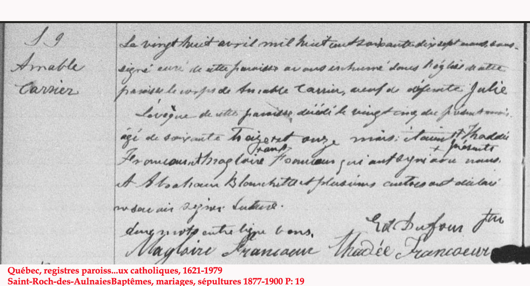Liste des personnes inhumées dans la "Crypte" de l'Église (1849) de St-Roch-des-Aulnaies