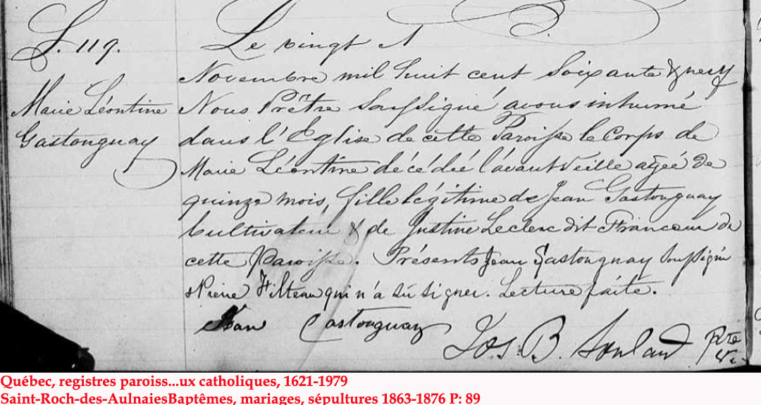 Fille de Augustin et Charlotte Lizotte