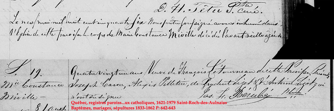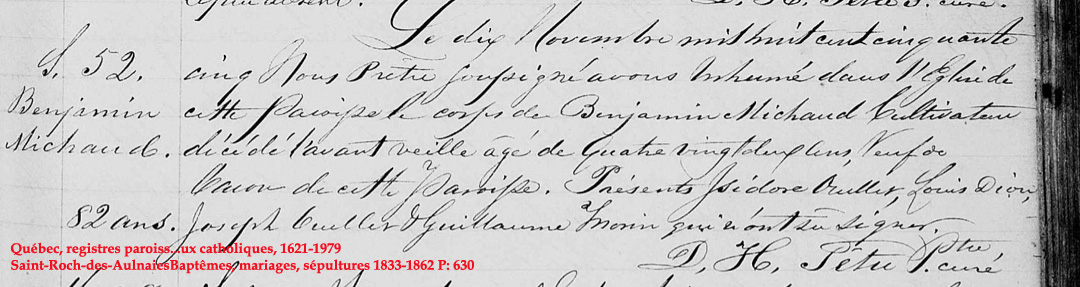 Liste des personnes inhumées dans la "Crypte" de l'Église (1849) de St-Roch-des-Aulnaies