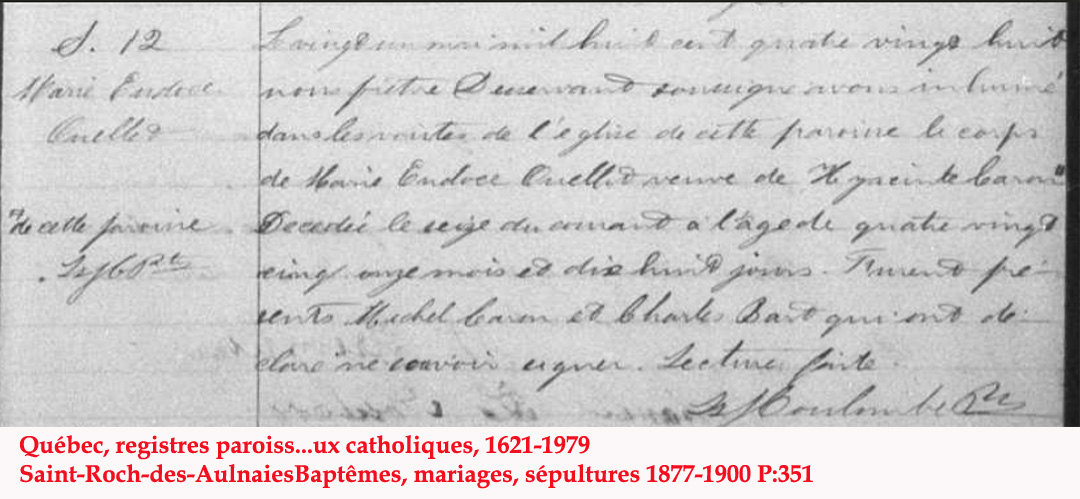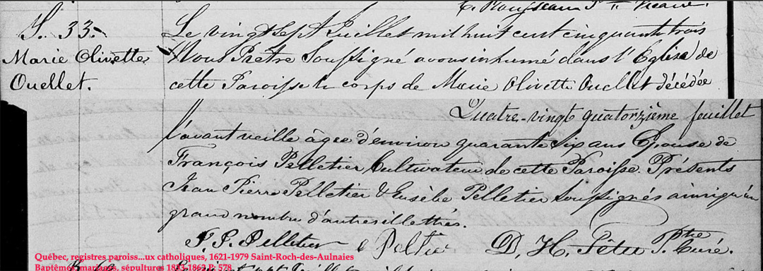 Liste des personnes inhumées dans la "Crypte" de l'Église (1849) de St-Roch-des-Aulnaies