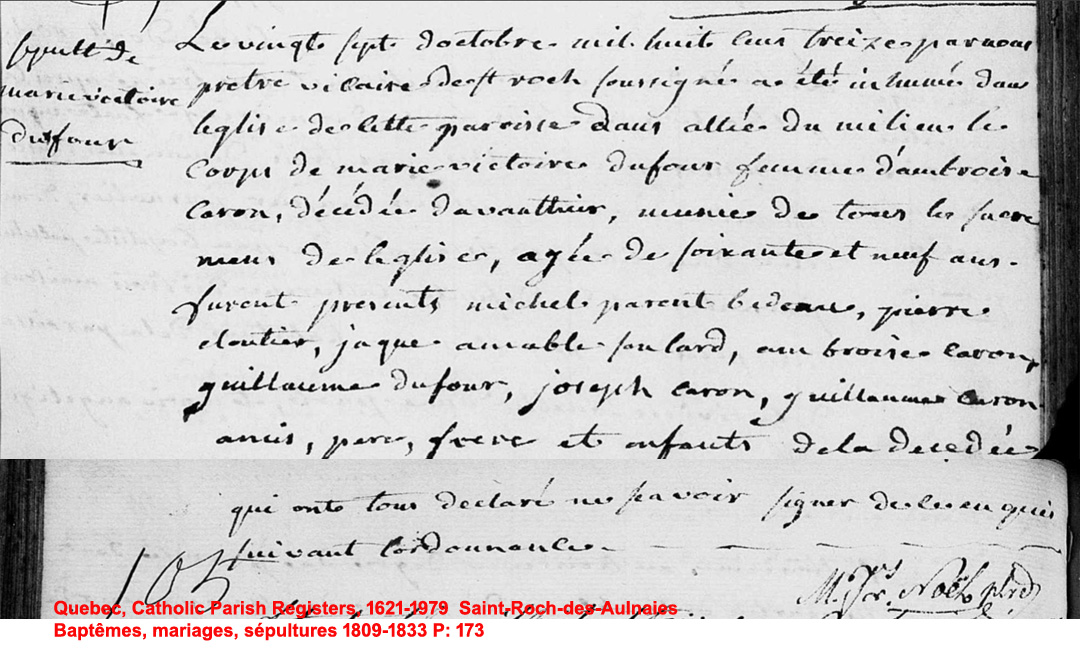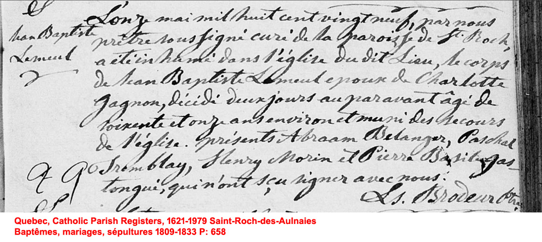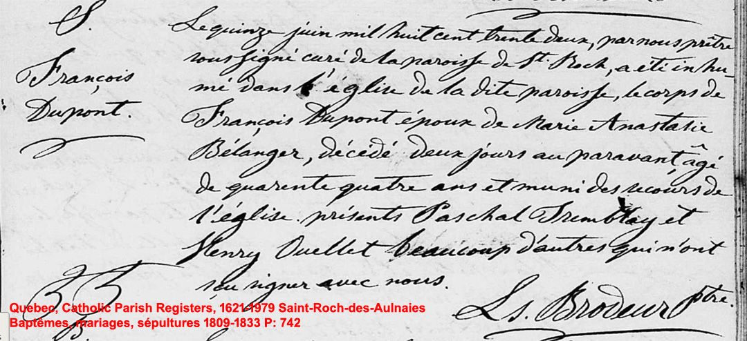 Liste des personnes inhumées dans l'Église de St-Roch-des-Aulnaies construite en 1724