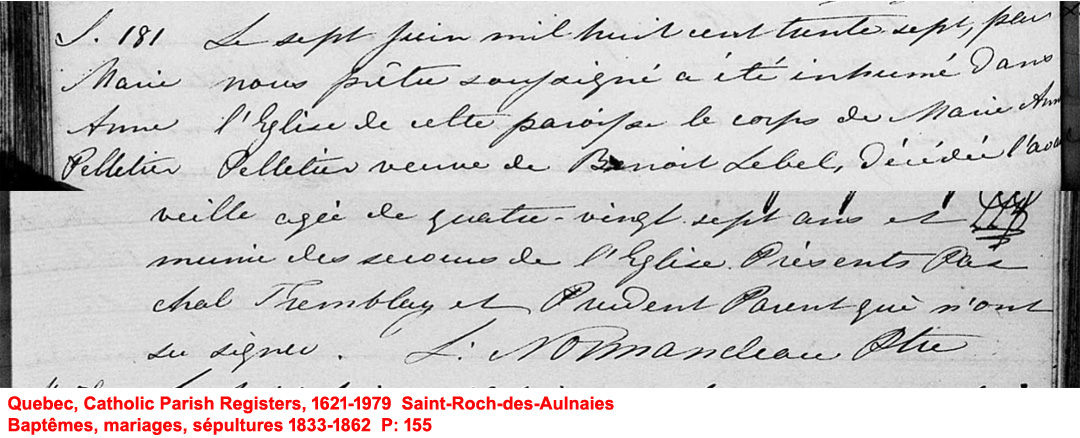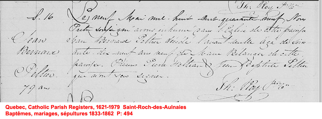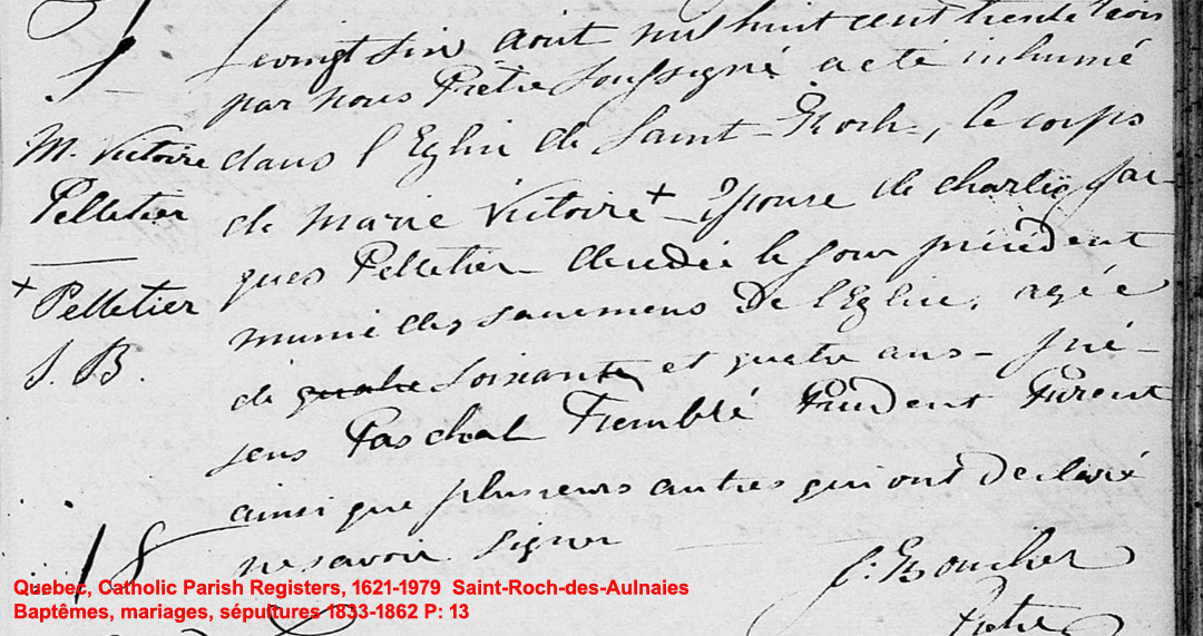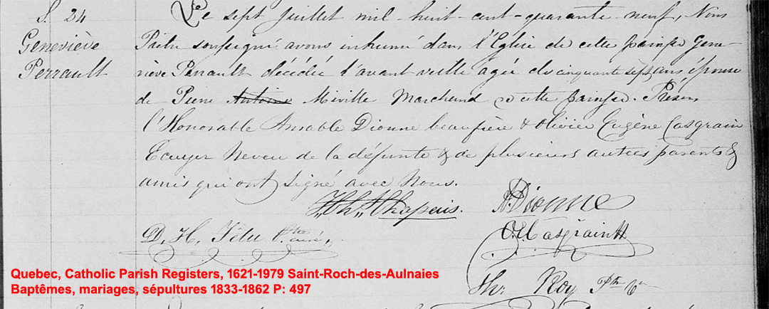Liste des personnes inhumées dans l'Église de St-Roch-des-Aulnaies construite en 1724