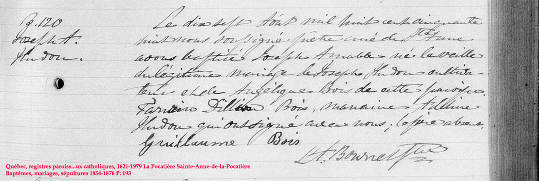 La Branche de Amable Hudon N*1858 D*1913 Marié à Joséphine Leclerc N*1859 M*1885 D*1939 Ascendants |