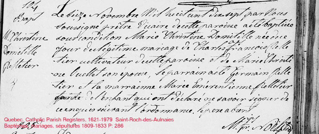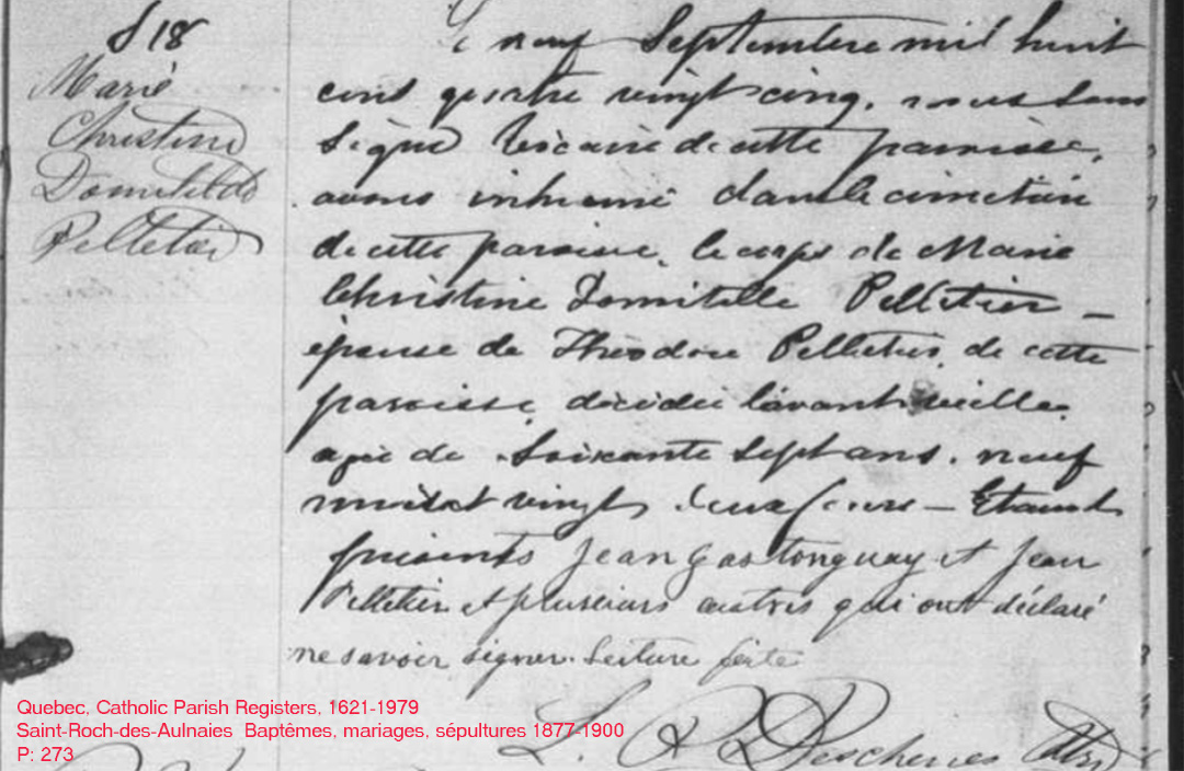 La Branche de Domithilde Pelletier N*1817 D*1885 Mariée à Théodore Pelletier N*1813 M*1837 D*1900 Ascendants |